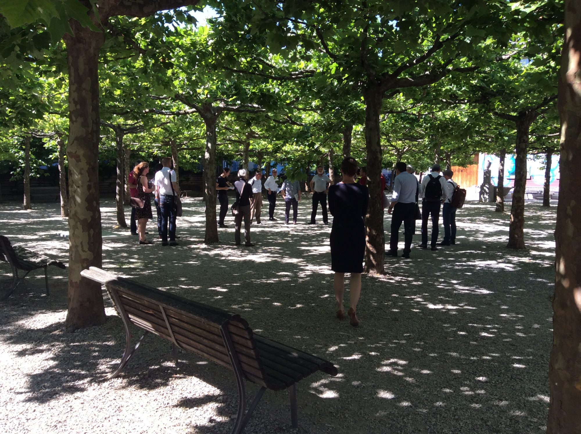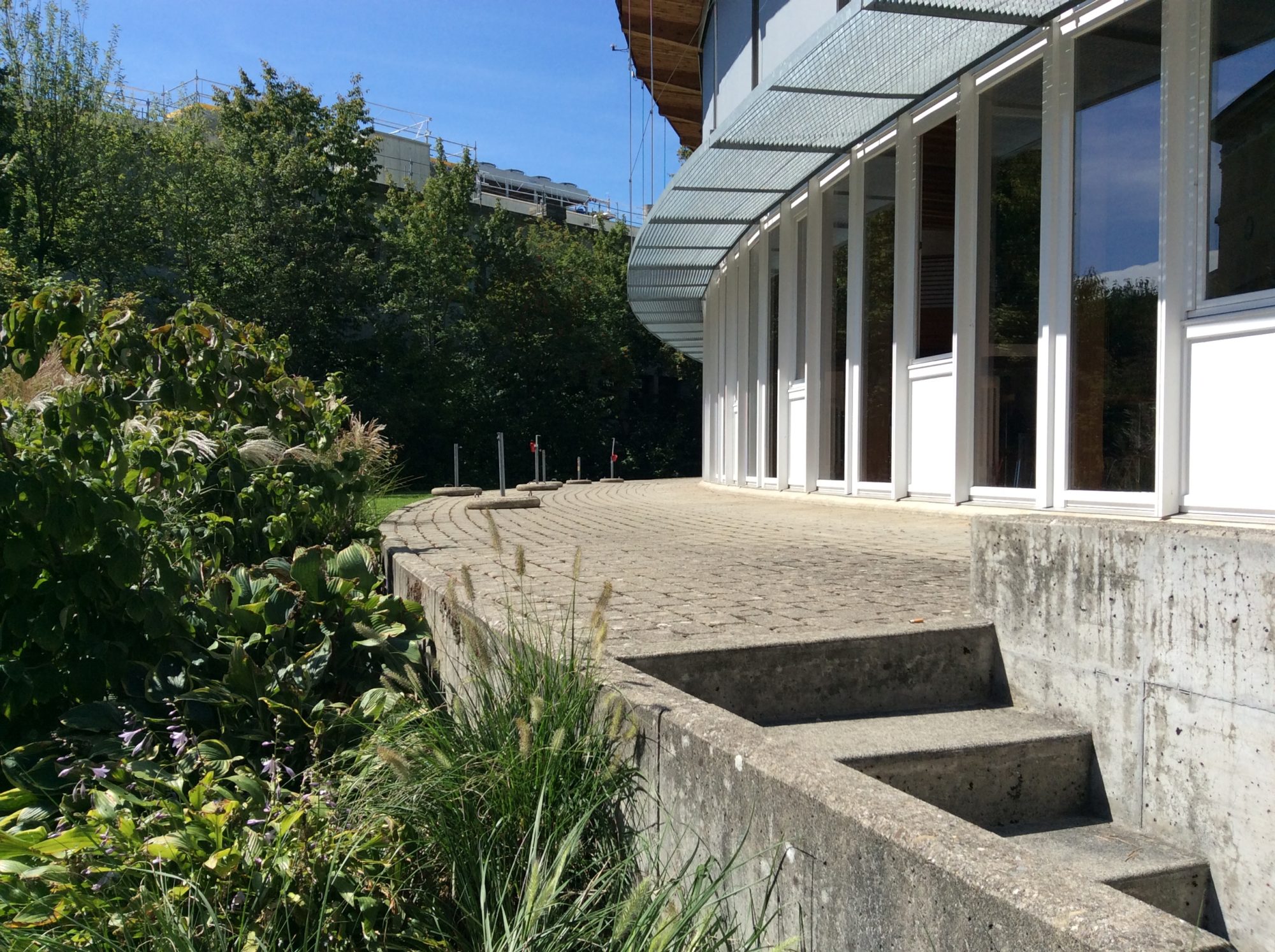 Ein Verweben der beiden benachbarten PartnerInnen Universität und Quartier findet im Wesentlichen über den Freiraum statt. Dabei sollten idealerweise auf Stadt-/Erdgeschoss-Niveau Synergien zwischen Nutzungen der Universität und dem Quartier gefunden werden.